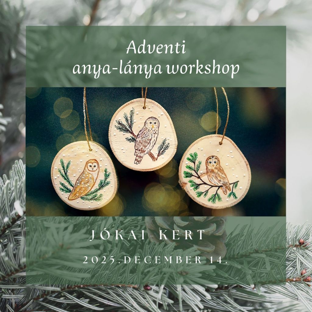 Adventi anya-lánya workshop Duna-Ipoly Nemzeti Park, Jókai-kert 1121 Budapest, Költő u. 21. Szeretettel várunk Benneteket egy hangulatos közös alkotásra, az idén átadott gyönyörű Jókai-kert Látogatóközpontba! Elkészíthetitek a karácsonyfa legegyedibb baglyos díszeit, melyhez minden eszközt biztosítunk. több